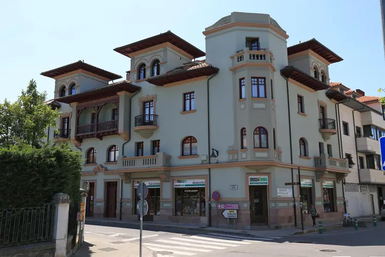 Casa de los Hermanos San Román. Interesante conjunto recogido en el Inventario de Patrimonio Arquitectónico de Asturias. Chalé exento, que forma parte de un conjunto de tres proyectado como urbanización sectorial. Es el edificio má ...